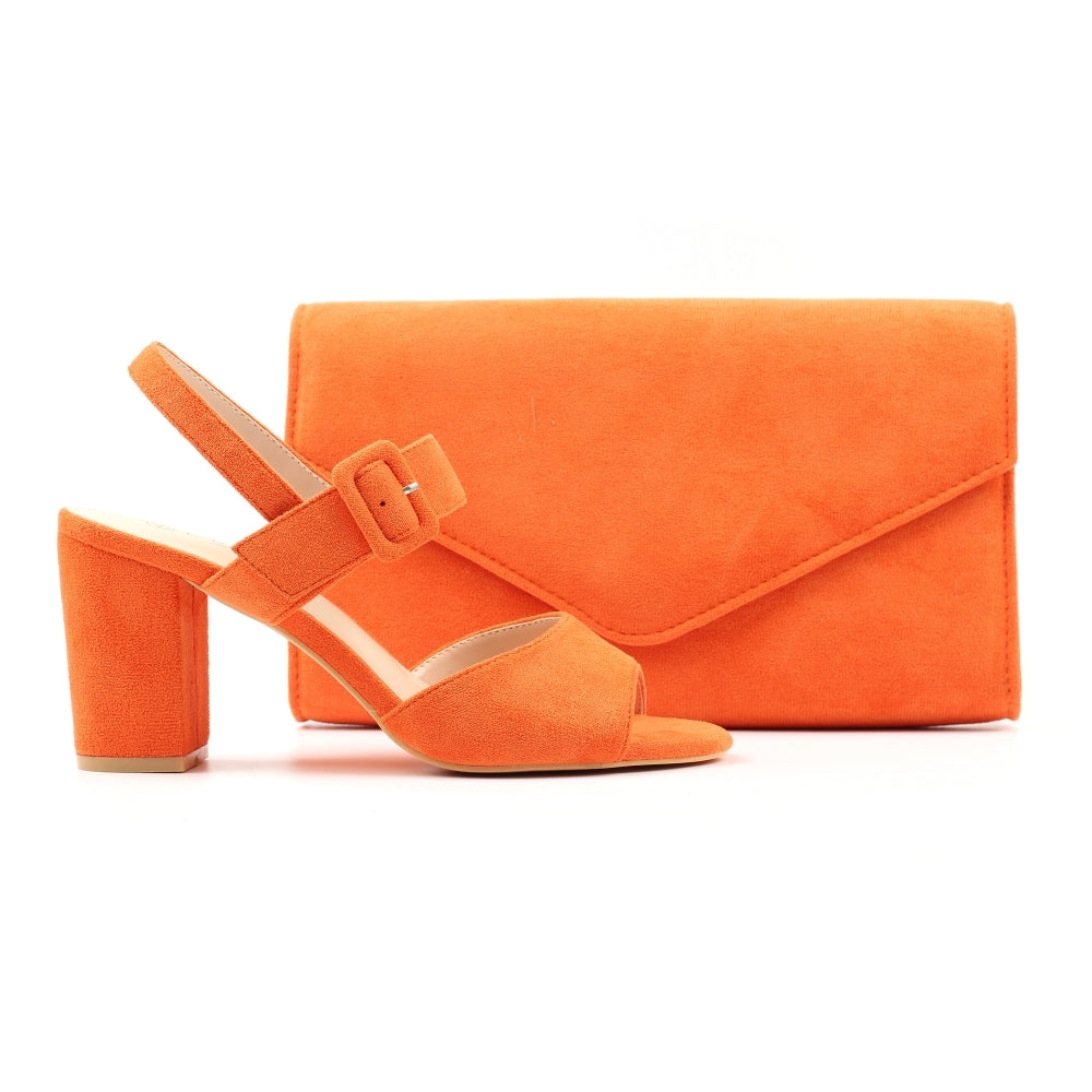 Clutch bag in orange to match Lunar's 'Phillipa' sandal