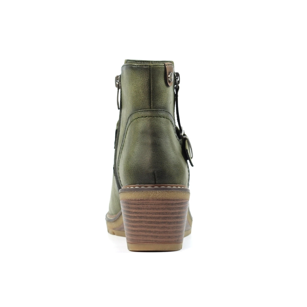 Ankle boot in stone colour with brown panel which contains diamond stitching design