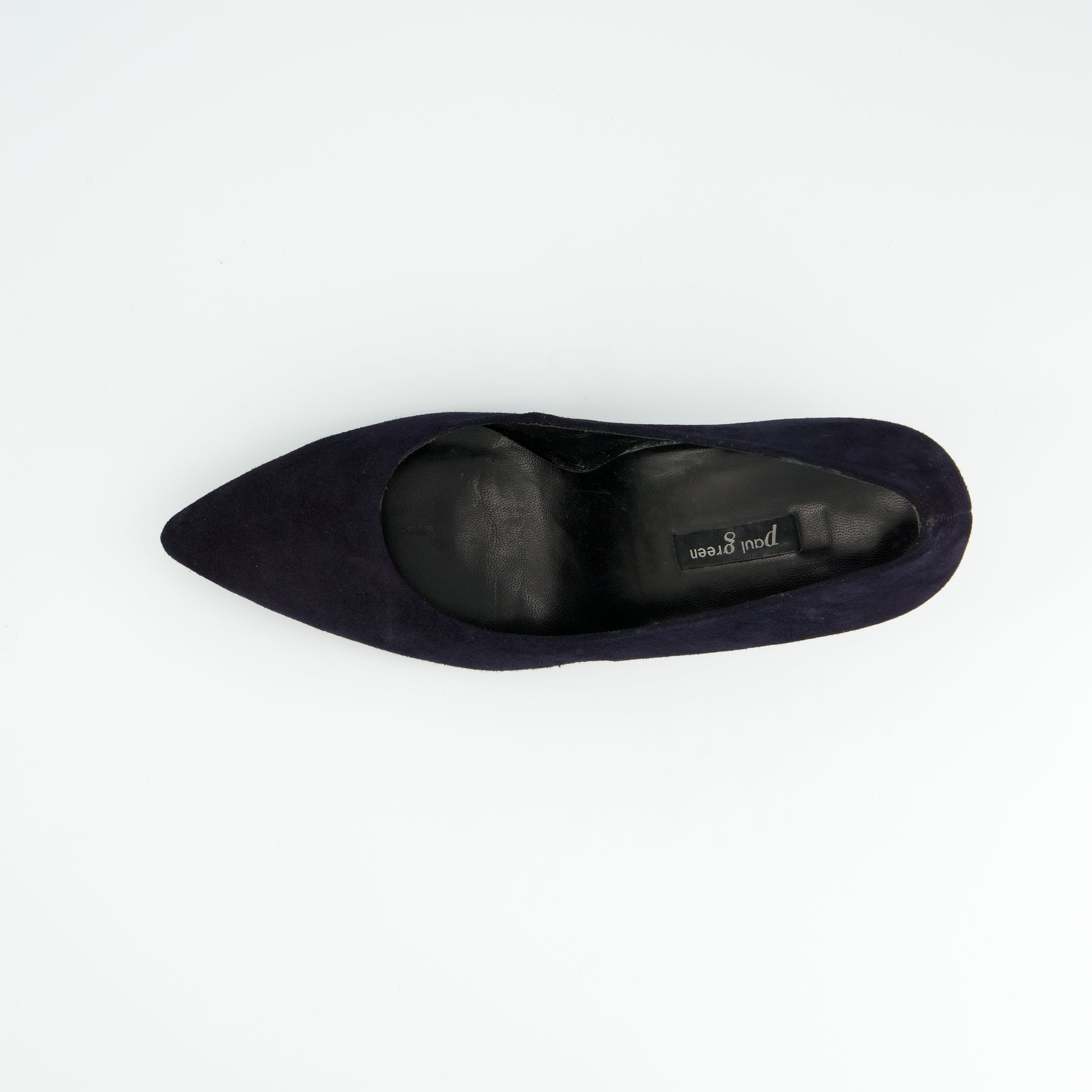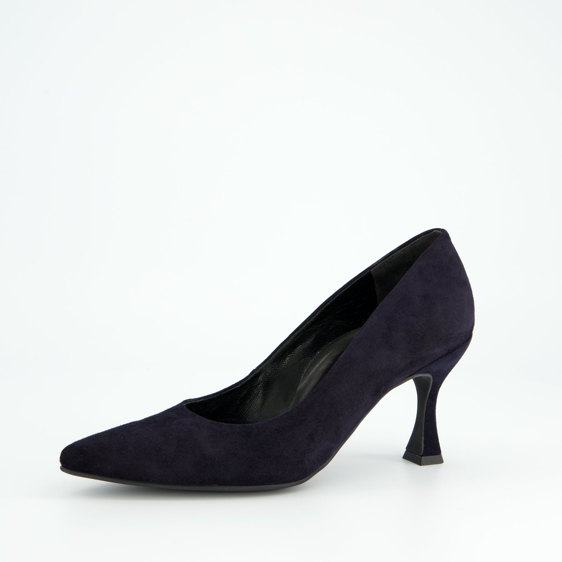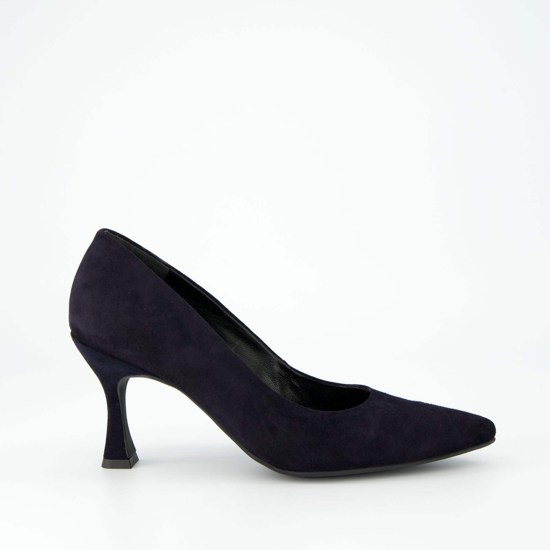 Suede leather sleek court shoe with pointed heel in navy