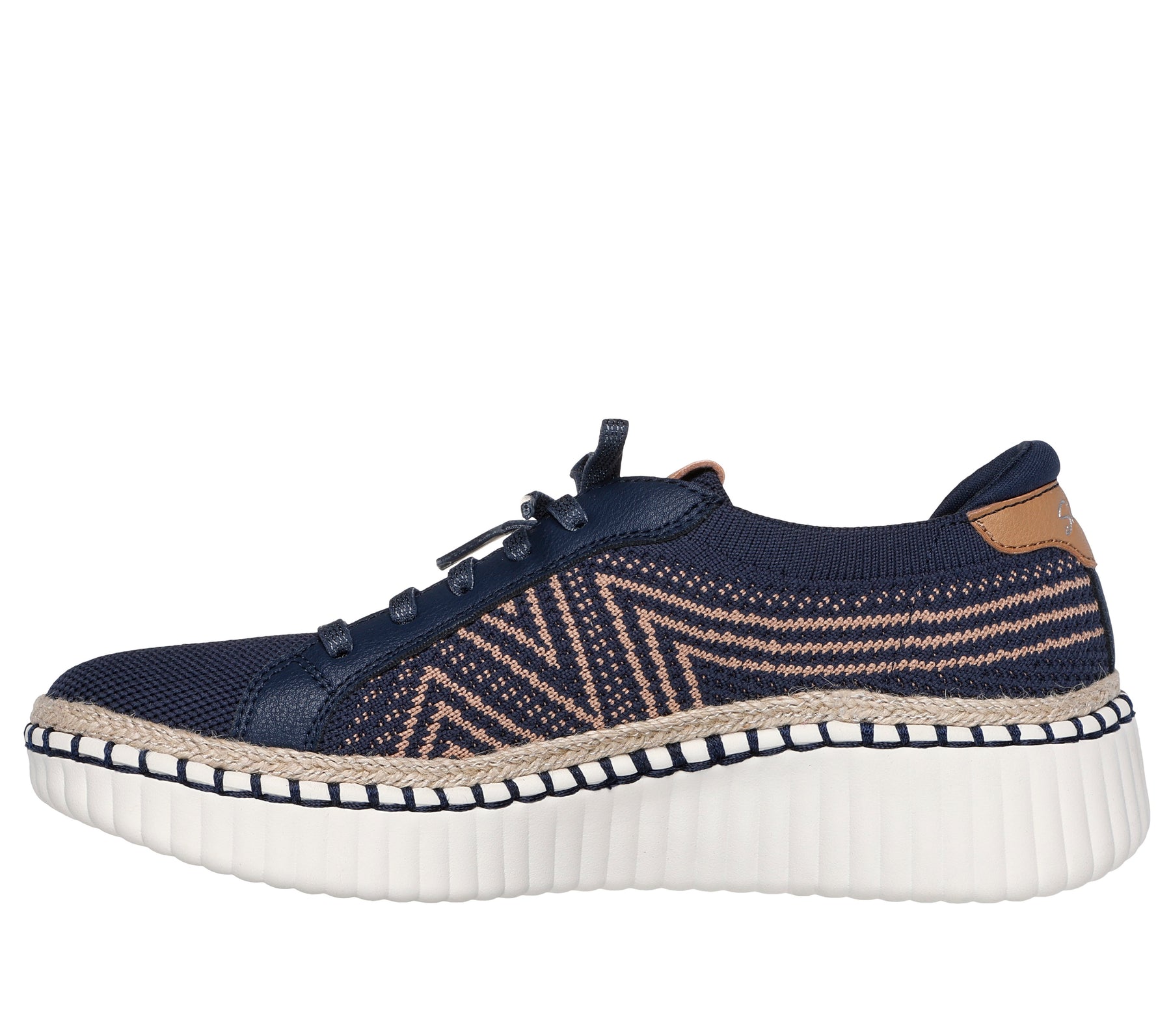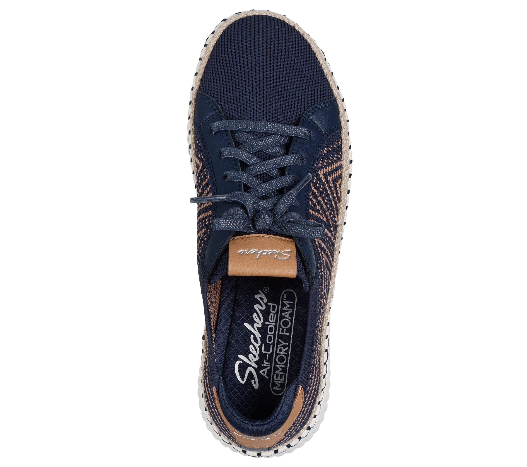 Pull-on style features a Stretch Fit® (sock-like feel) two-tone knit upper with deco laces and a cushioned Skechers Air-Cooled Memory Foam® comfort insole