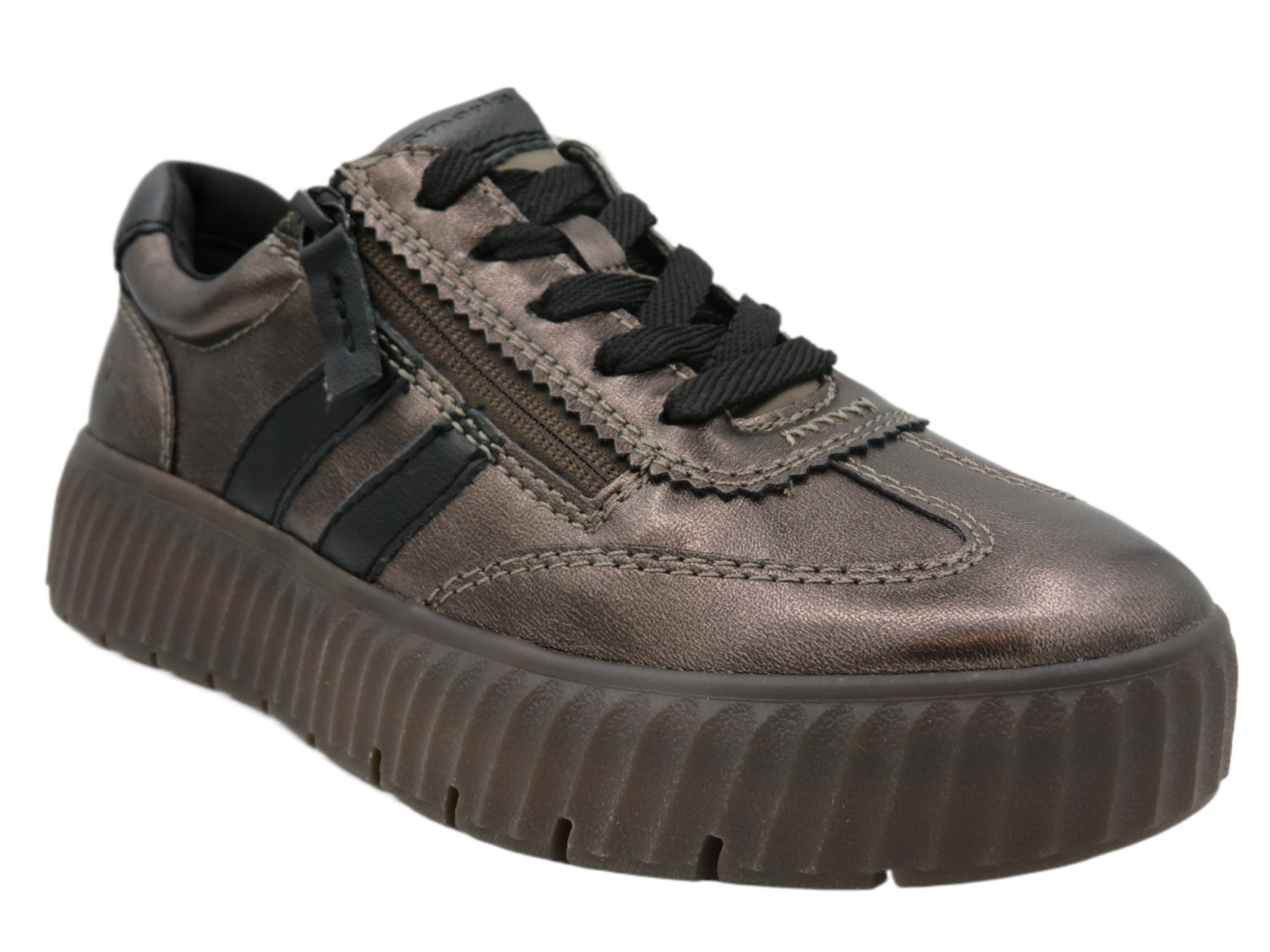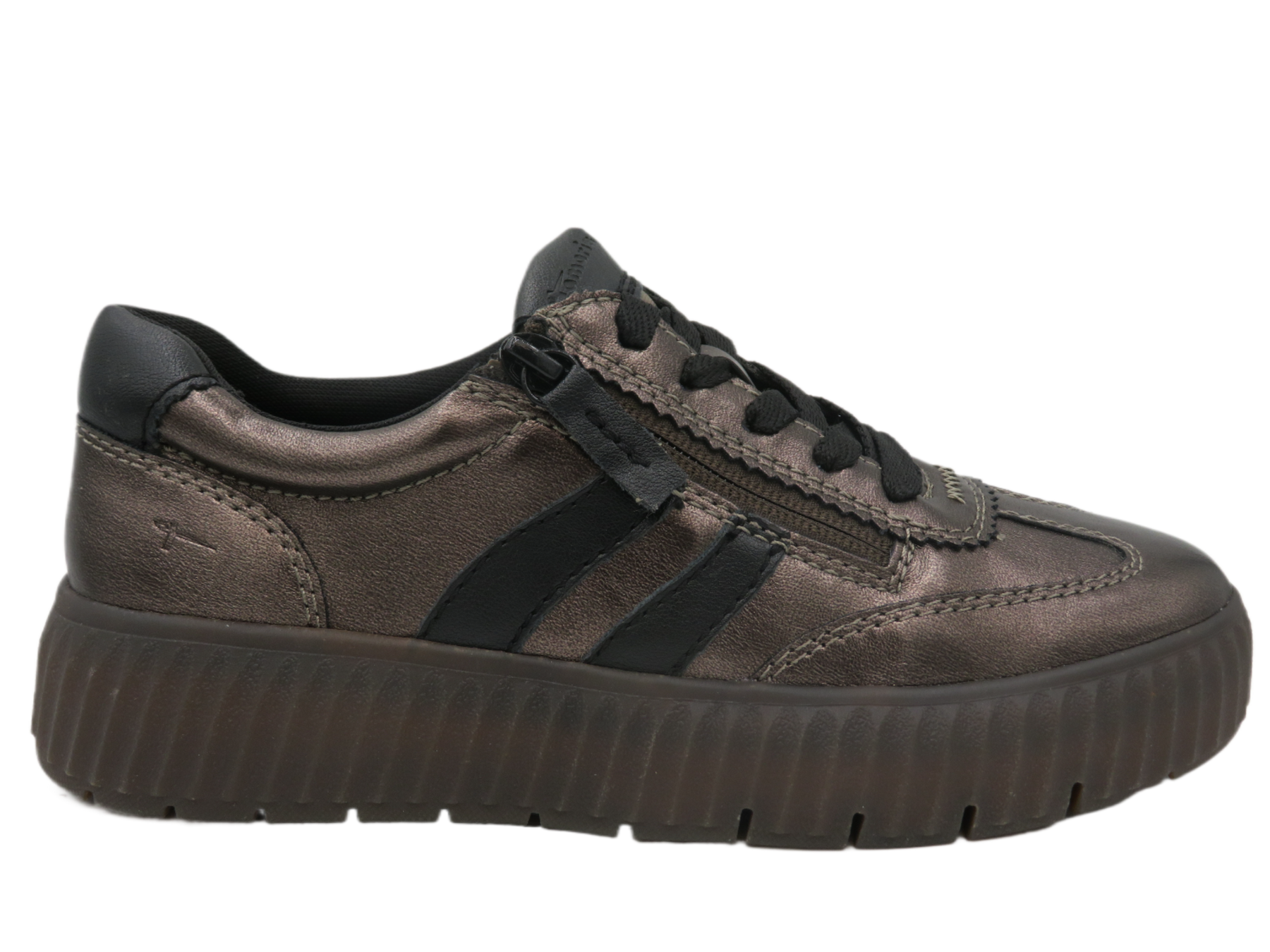 Lightweight, chunky trainer in black / bronze with elasticated laces and Wonders large 'W' branding on the side