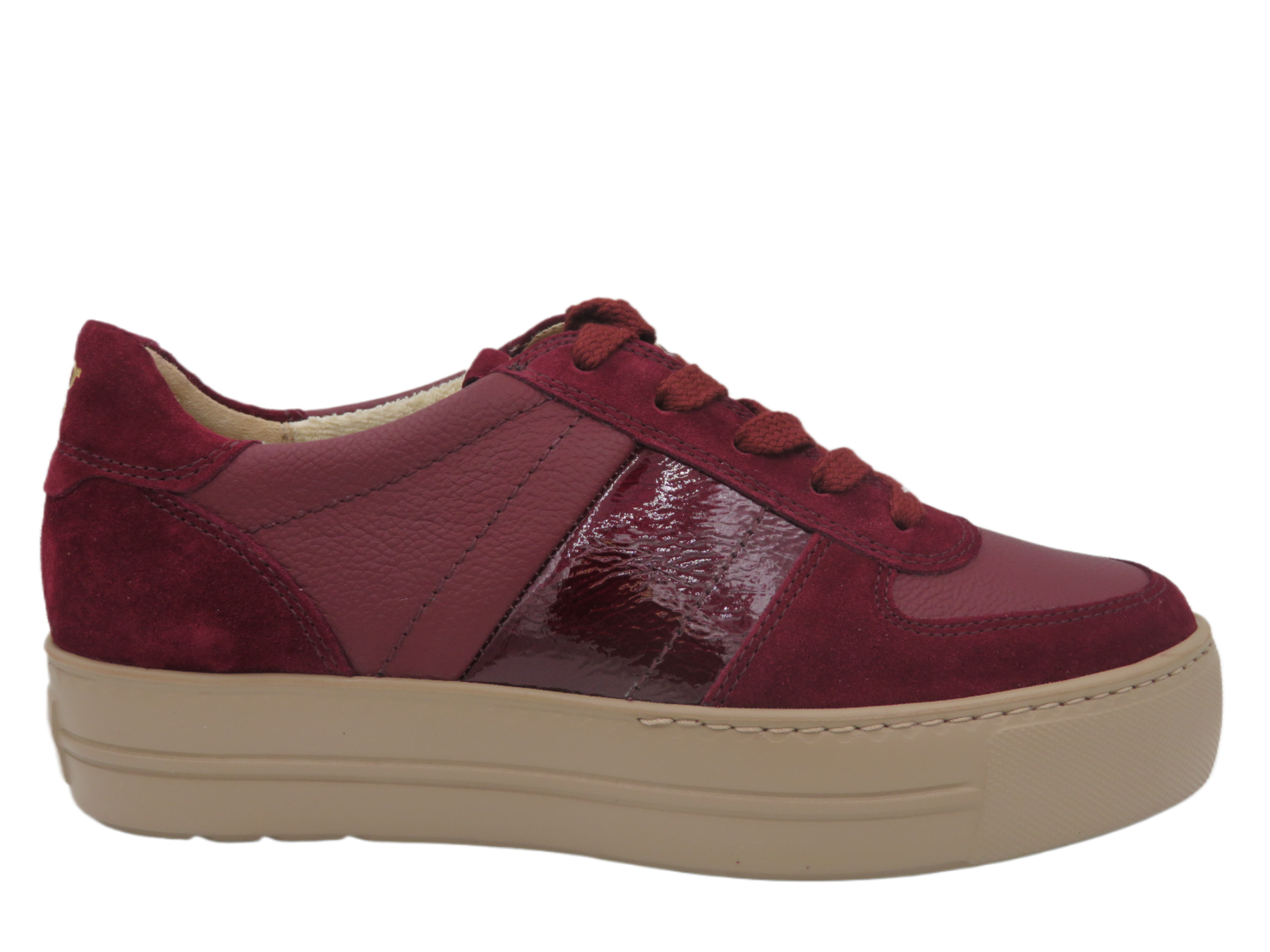 Lightweight, chunky trainer in burgundy with elasticated laces and Wonders large 'W' branding on the side