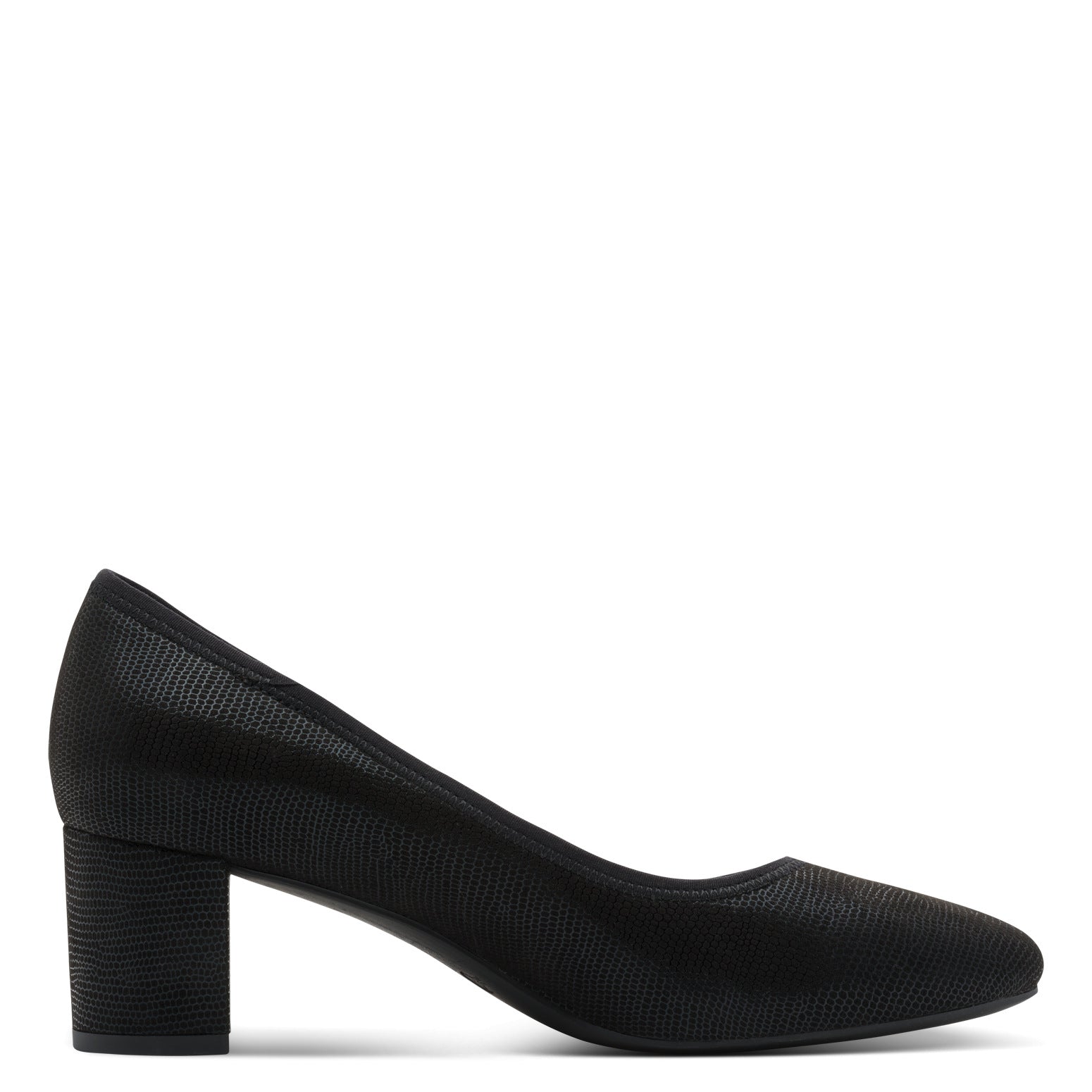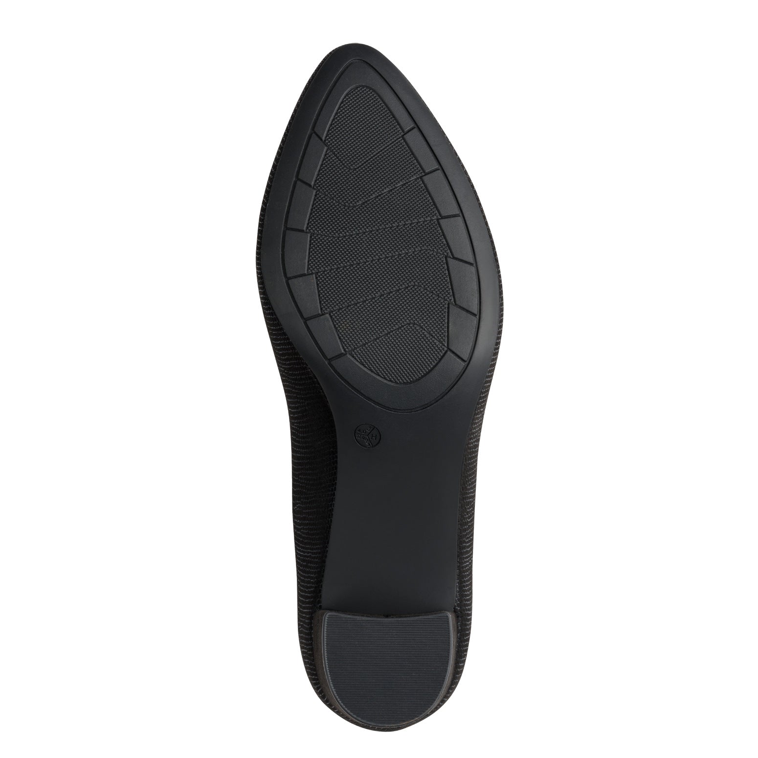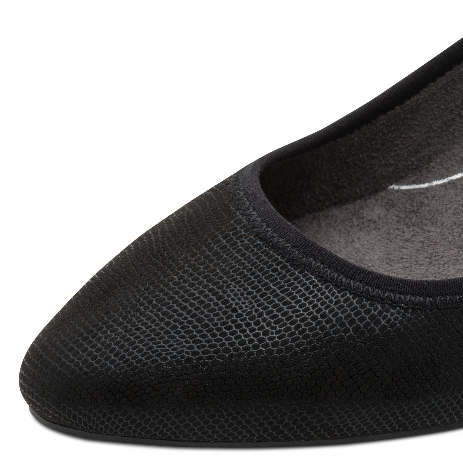 Slingback shoe in black leather with silver stud detailing on a low heel of approx 6cm
