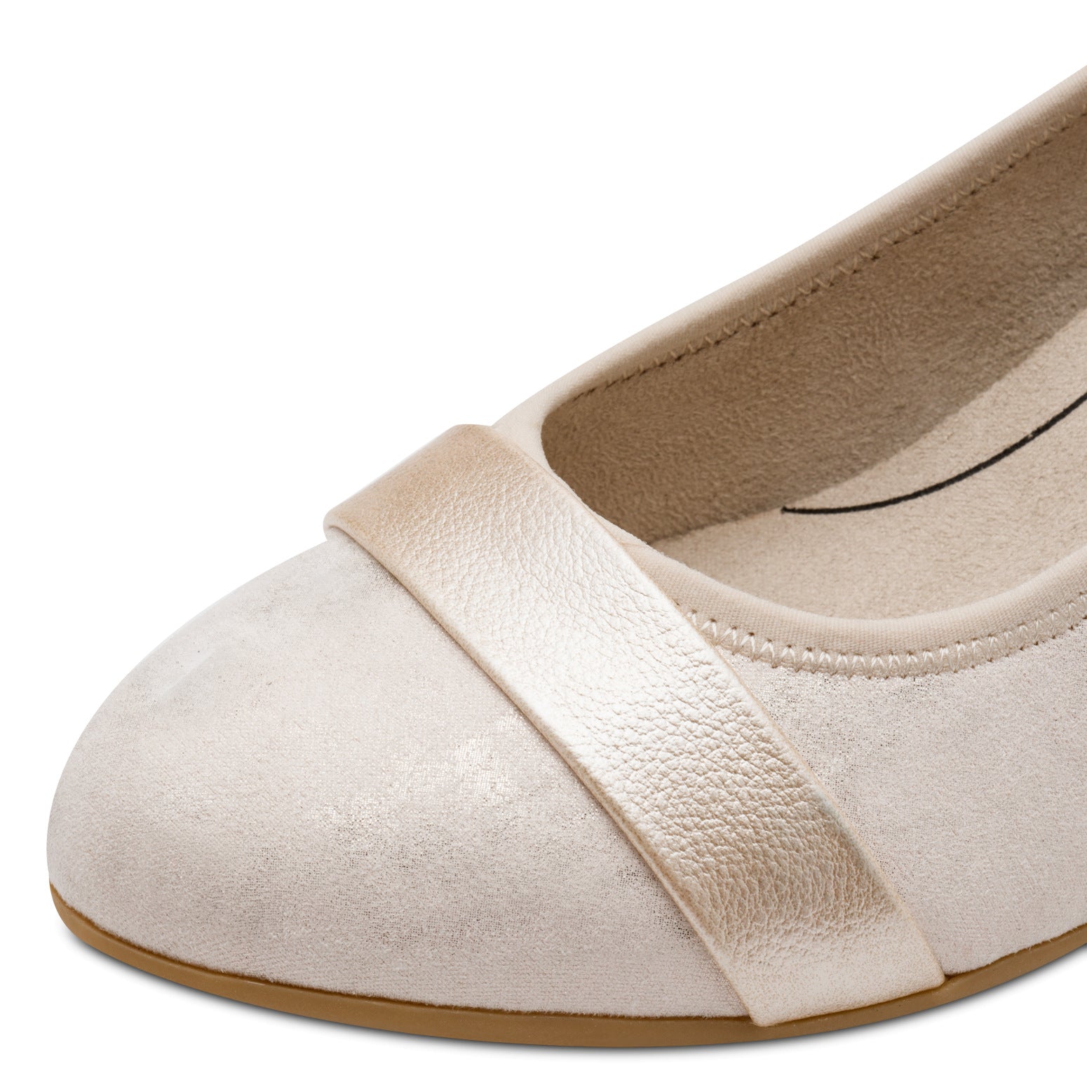 Beautiful occasion shoe in pale pink leather with shimmer strip